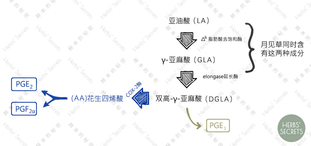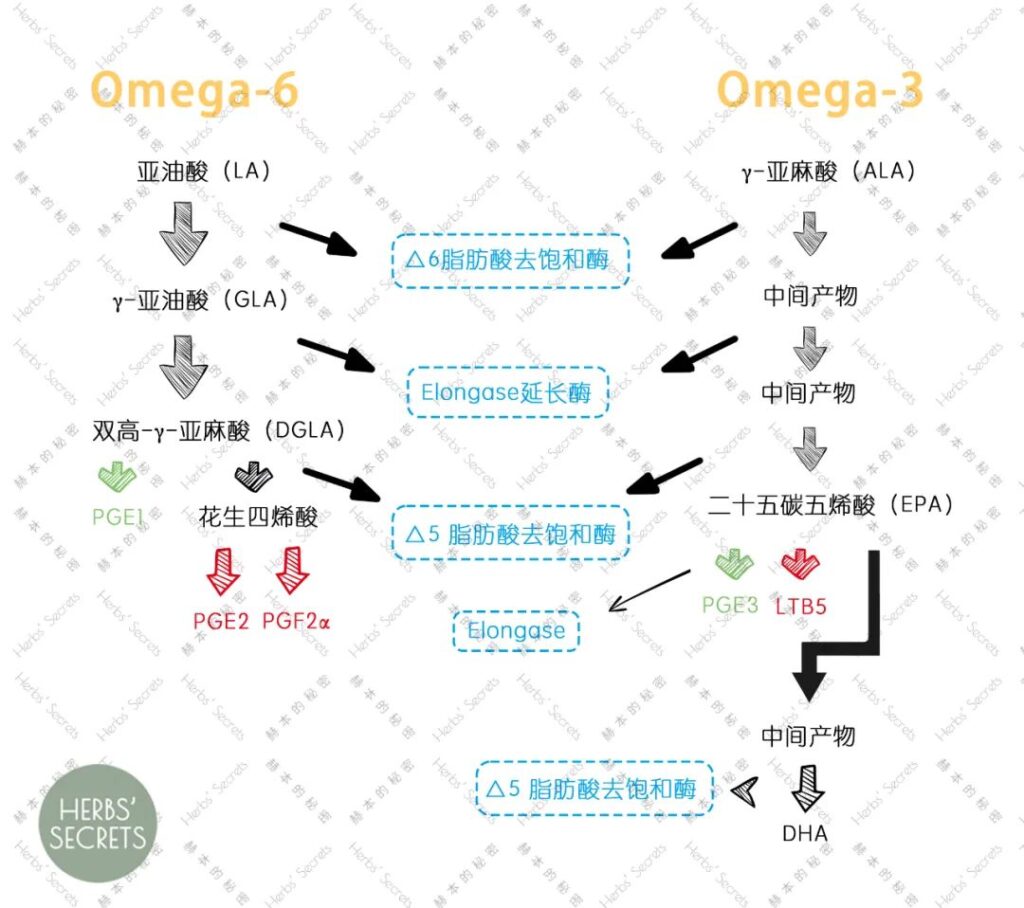 路径②:LA、GLA生成DGLA → 在酶的作用下先产生AA,再继而得到前列腺素PGE2和PGF2α