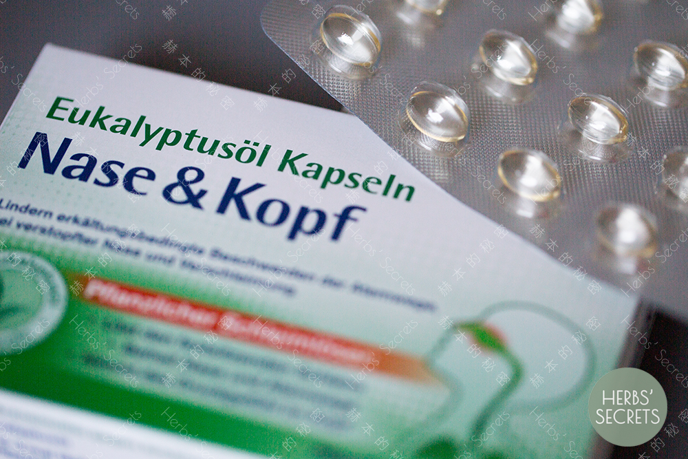 而第三类配方则比较特殊,在这里药厂甚至放弃了精油的形态,只从中提取他们认为最有效的单体成分组成药剂。还是拿蓝胶尤加利来举例,有药厂会将其中的功效成分1,8-Cineol单独作提取并做成一款药品,这种做法的“优点”就是可以更灵活地调控有效成分的剂量(通常是加大剂量),从而去获得更强劲和直接的疗效。但与此相伴的药用风险也会更大,禁忌人群也会更多。