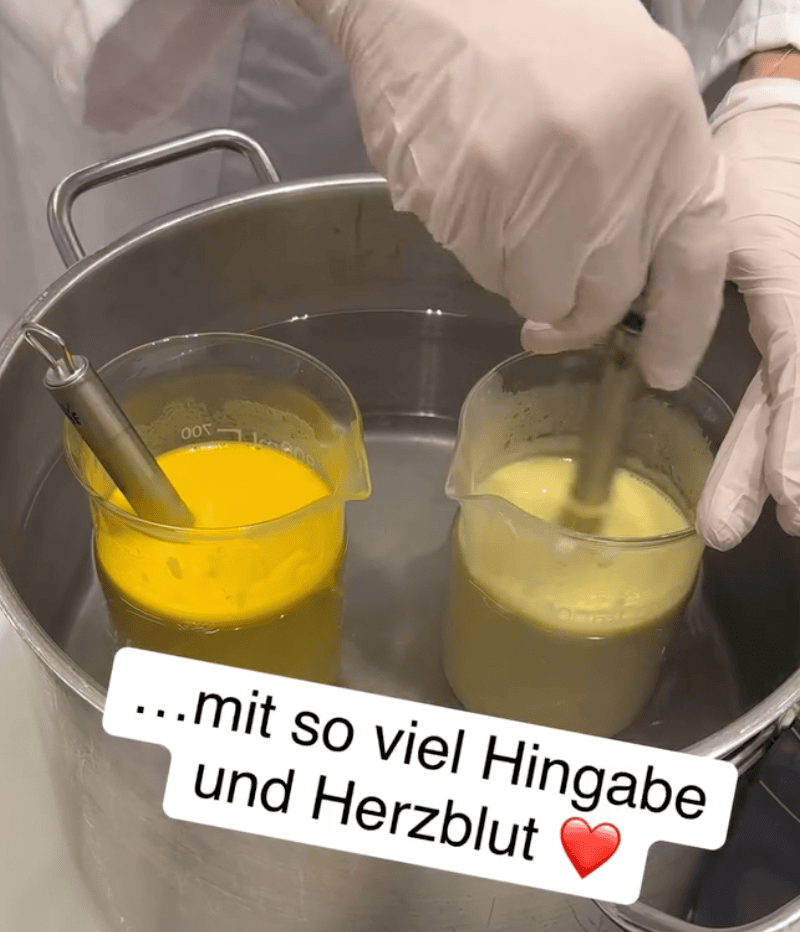 Maienfelser面霜的生产过程, from IG Maienfelser | 其实在看到这些之前我并未料想他家至今还采用这样的生产方式,我以为至少会用到均质机。但如果还是保留这样的传统手工模式,那么所采用到的乳化成分一定会有局限性(单一性)。且不同批次之间面霜质感/气味等性状出现不同的可能性也会加大。(这一情况也确实在他家面霜中比较常见)