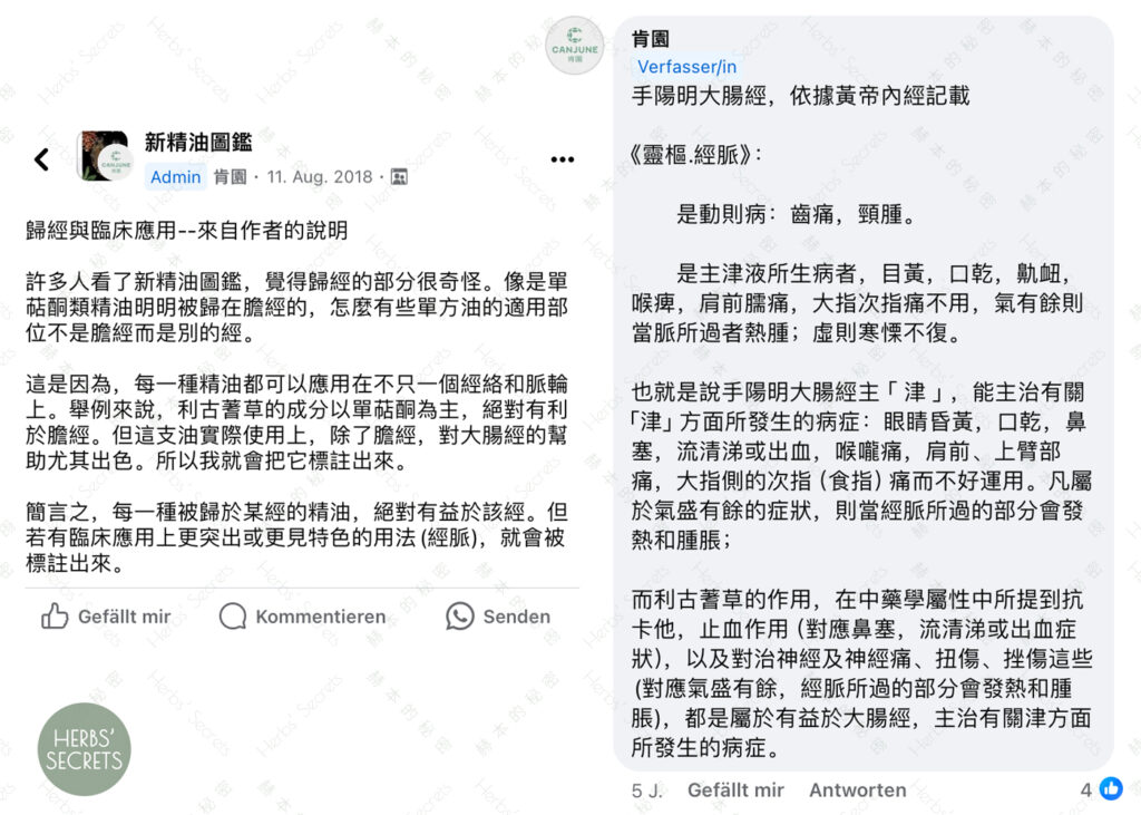 反观精油,这两个问题也是目前精油归经过程中最常见的误区,即把建立在现代医学框架下的「药学属性」直接与中医概念的脏腑病变等同,以及用单一「化学成分」的特性直接套用在含有它的完整精油上。